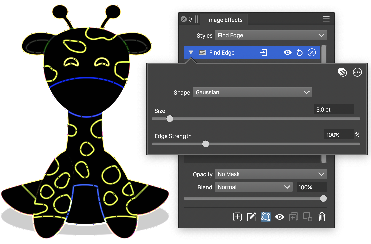 This image effect is typically used on imported images, to extract edges for manual tracing.
