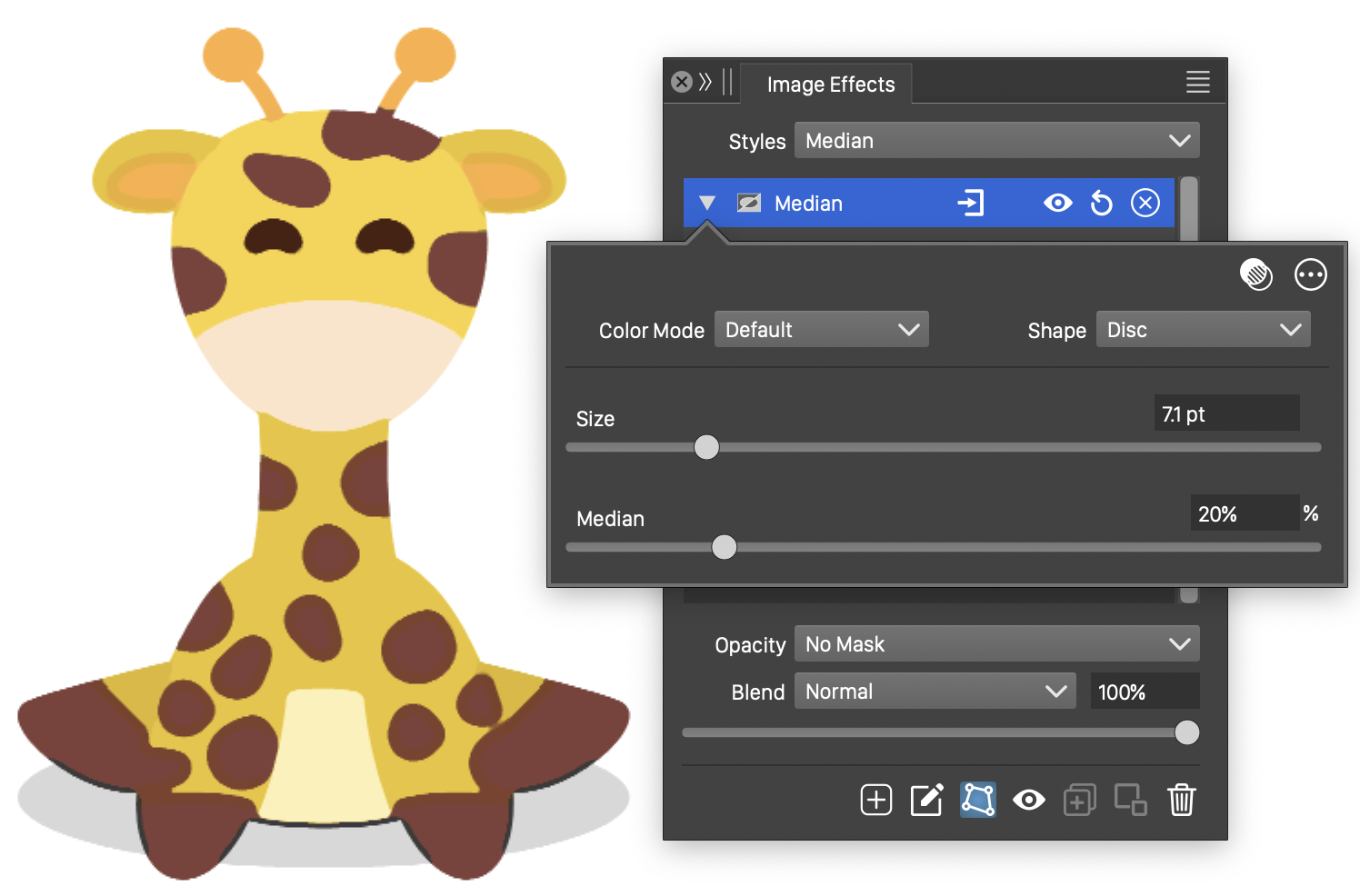 The Median image effect uses the following basic options: