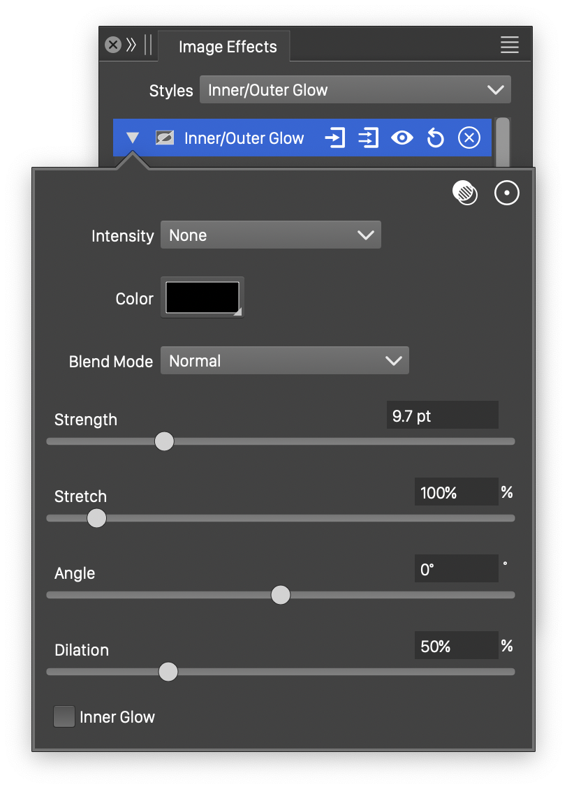 - Inner Glow - Select inner or outer glow mode.