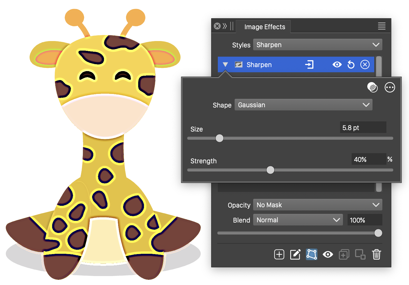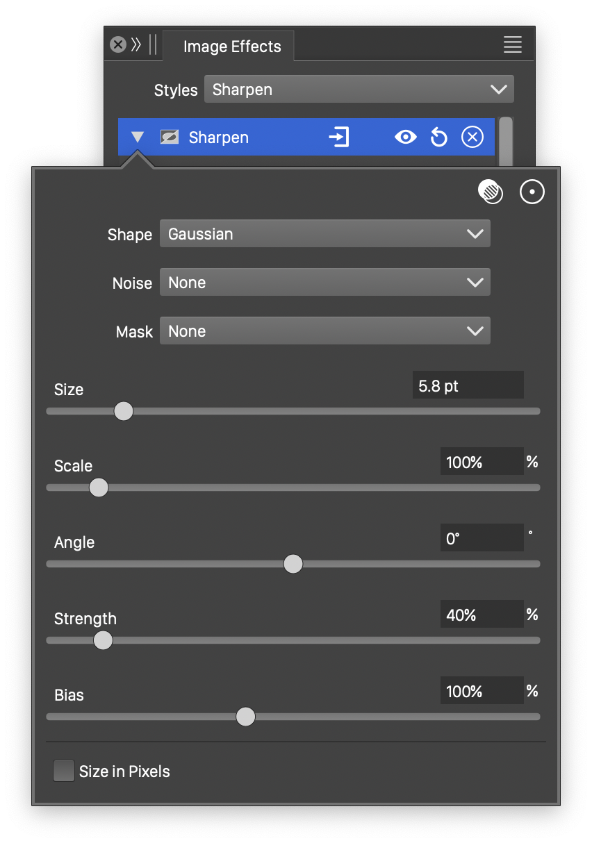 The Sharpen image effect uses the following basic options: