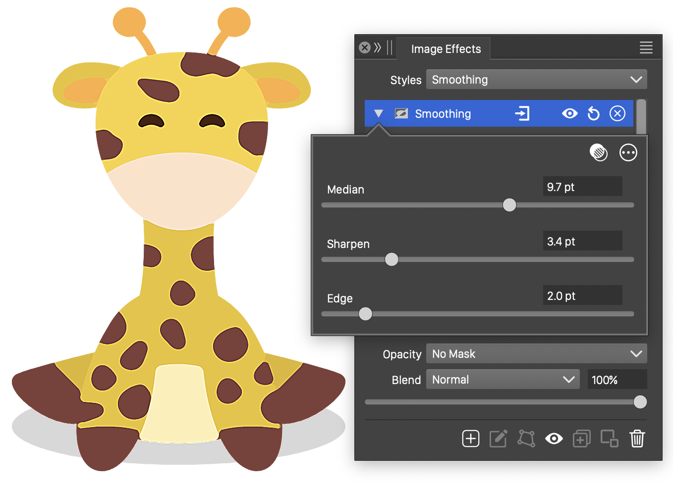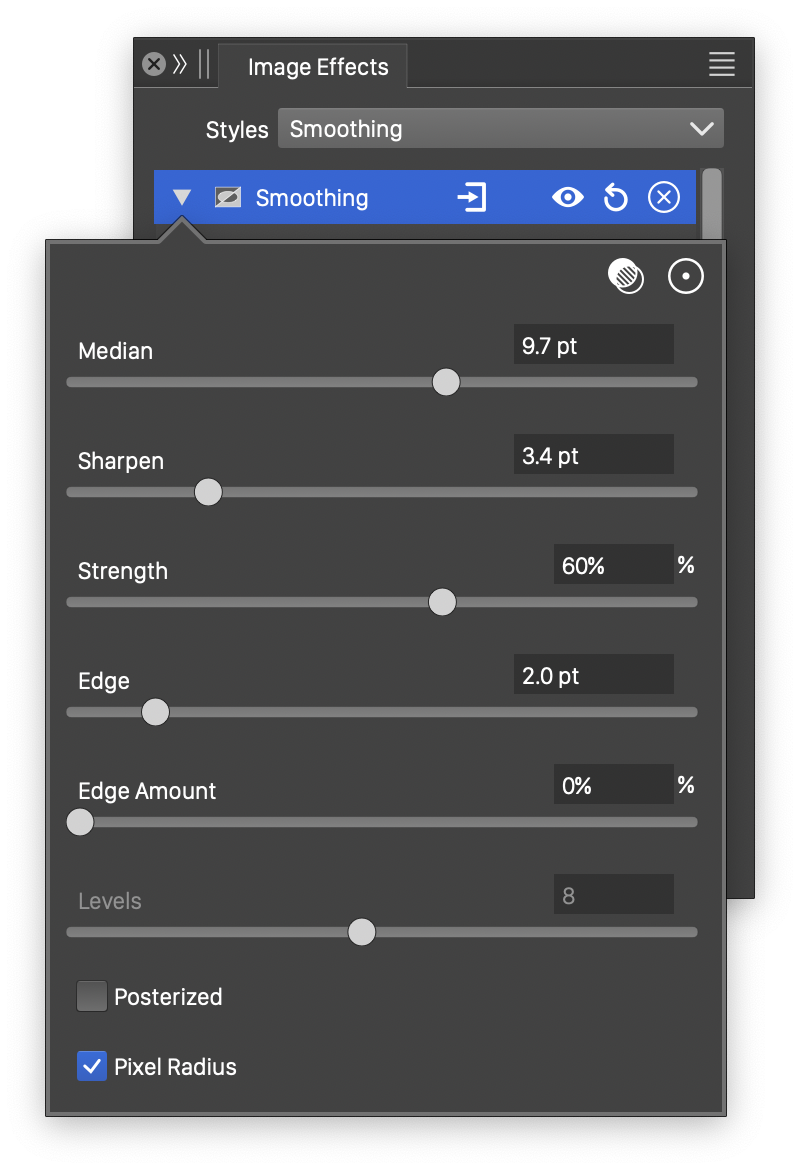 The Smoothing image effect uses the following basic options: