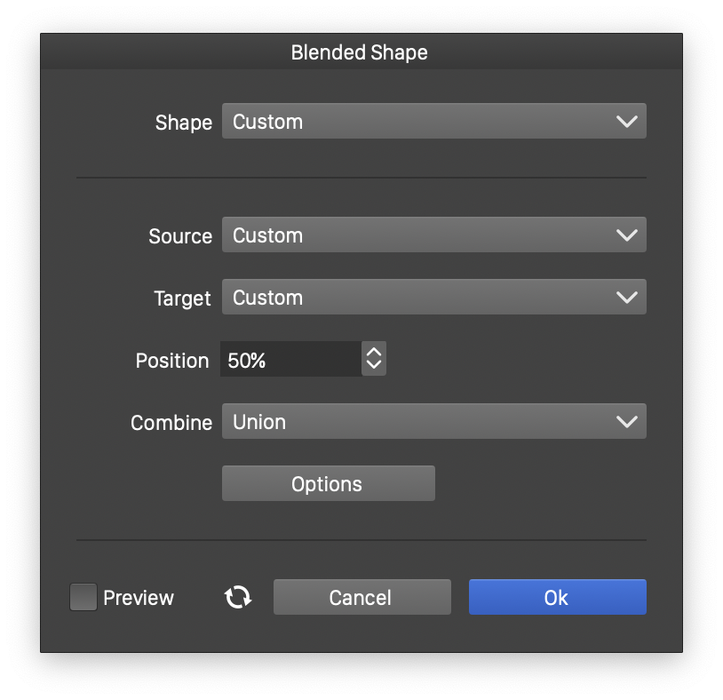 - Position - The blending position to create the intermediary shape.
