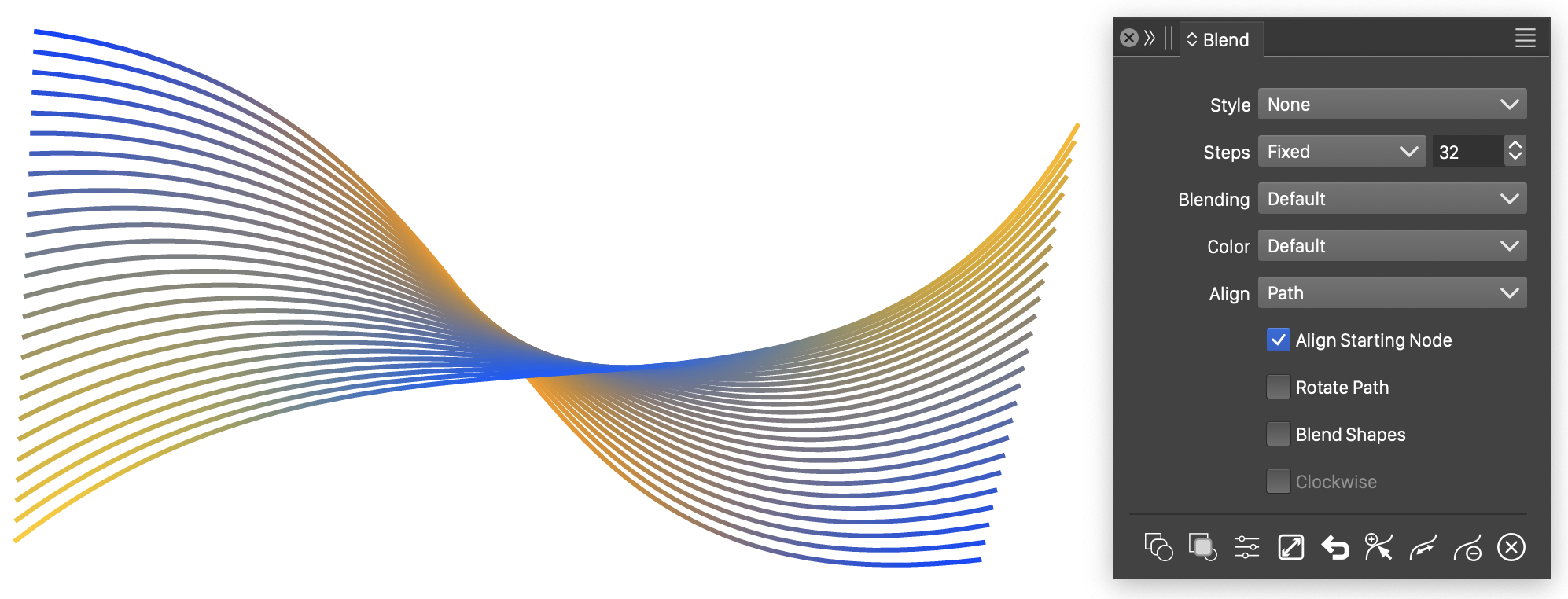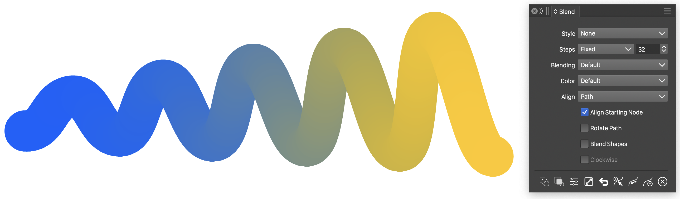 - The blend path can also be created by editing the blend object with the Node tool. The initial blend path will be a line.