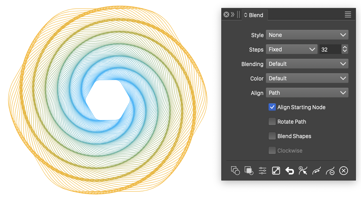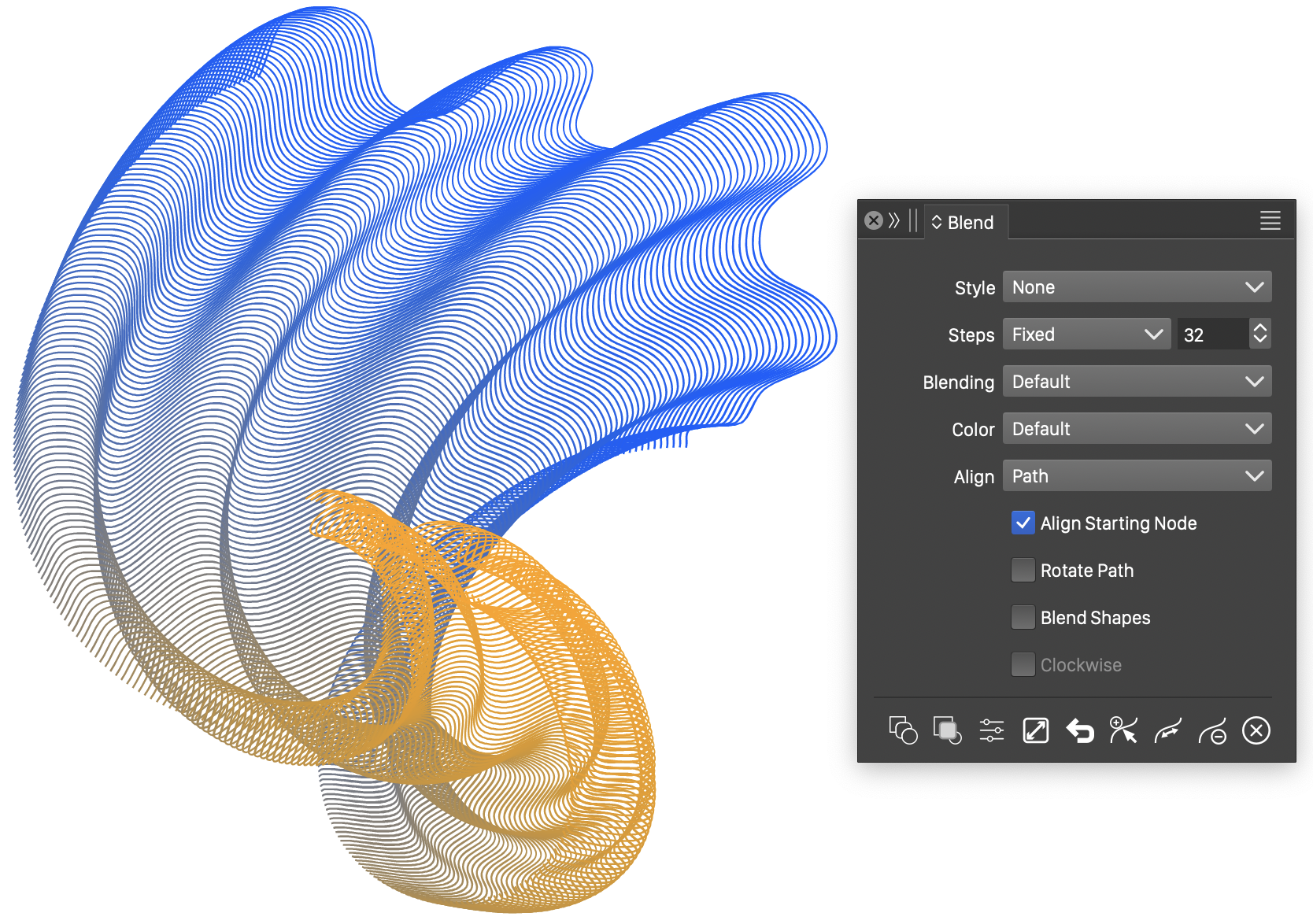 button, to create a blend effect. - Adjust the blend options in the panel, after the blend effect has been created.