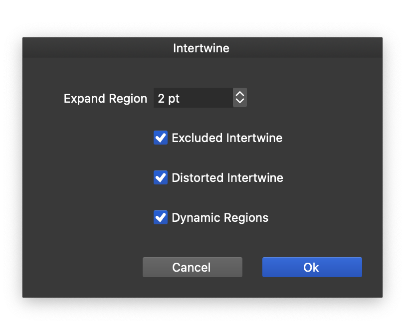 - Dynamic Regions - Check to create dynamic intertwine regions when clicking on overlapping areas. Dynamic intertwine regions are automatically updated when the underlying objects change.