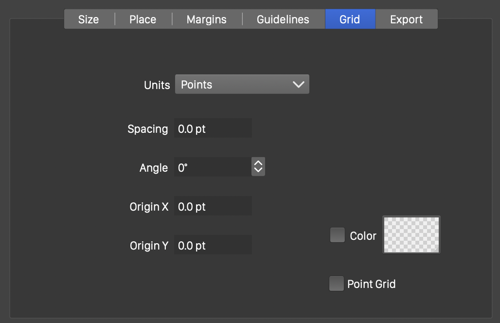 - Color - select the color of the grid associated with the artboard. Each artboard can have a grid with its specific color.