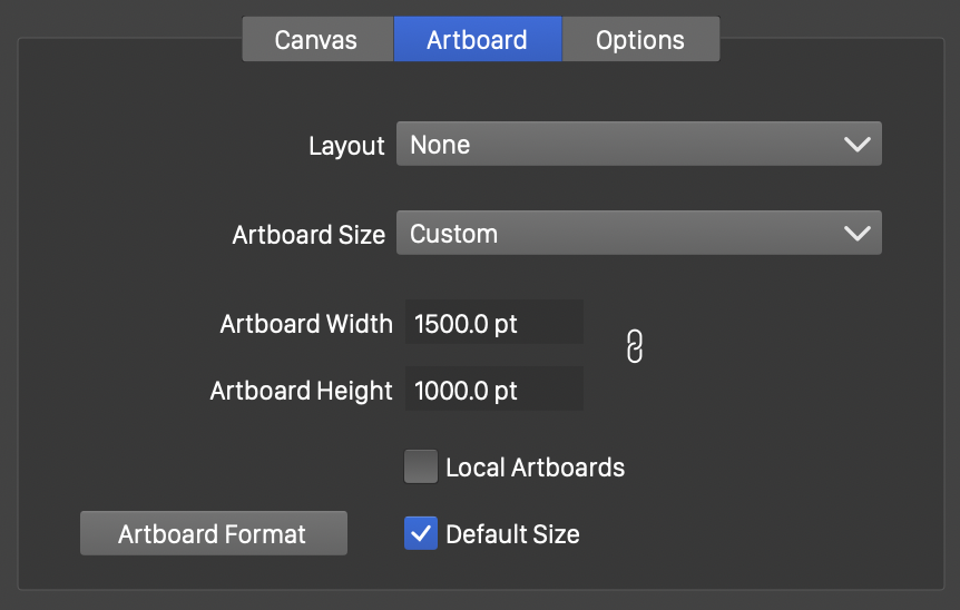 - Artboard Format - Opens the Artboard Options editor view, described in the Artboards section.