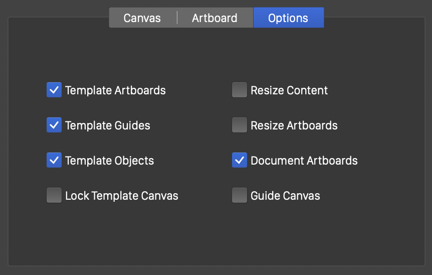 - Template Artboards - Enable or disable the use of artboards from the template canvas.