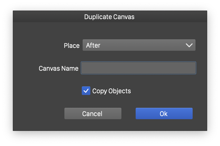 - Canvas Name - Edit the name of the copied canvas, used to identify the canvas in the Canvas & Artboard panel.