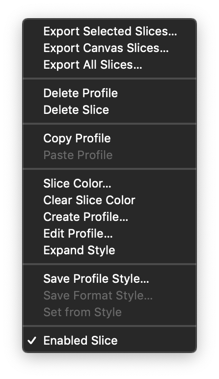 The Slices panel menu.