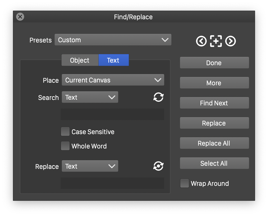 - Place - Select where to search for the text.