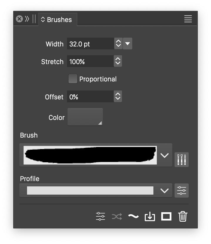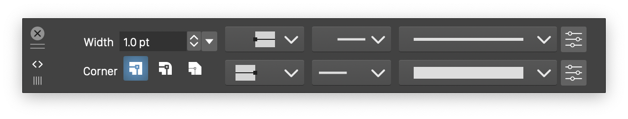 In VectorStyler, most panels can be docked in both horizontal or vertical modes. The content of horizontal and vertical states of the same panel may differ substantially. By default, all panels are in vertical mode. Typically, panels that do not display lists are suitable for horizontal docking (and horizontal mode). For example: the Layers, Appearance or Presets panels do not support horizontal modes, while the Stroke, Transform or Color panels do.