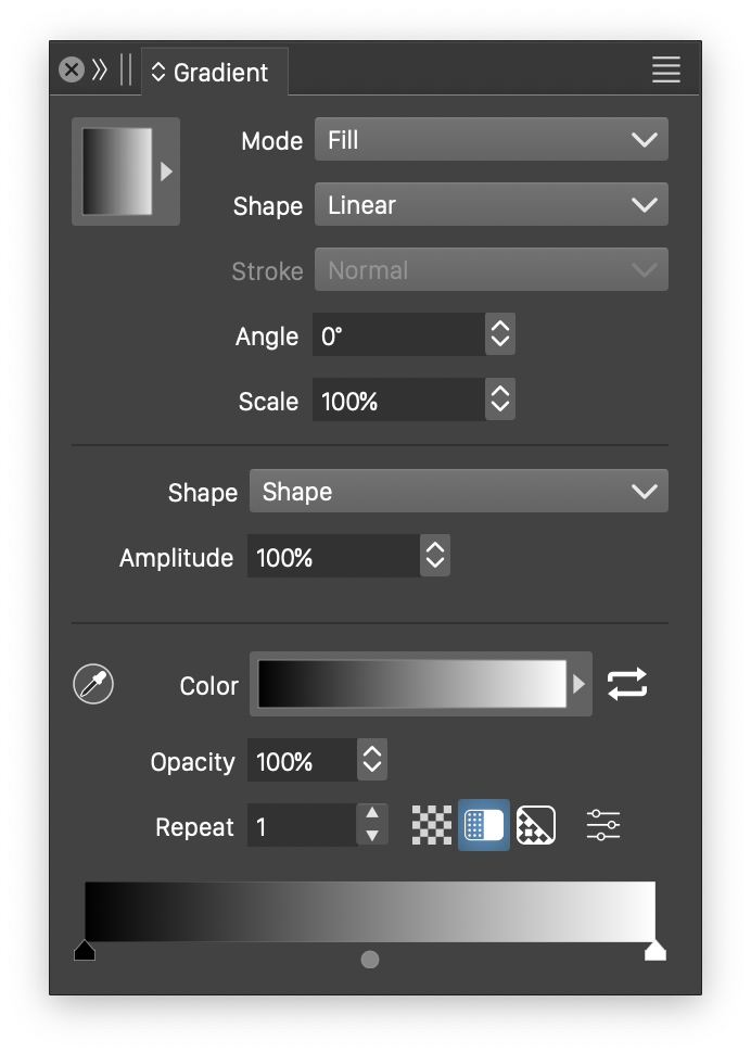 In VectorStyler, most of the attributes of objects, effects, shapes or styles are accessible from panels. Panels provide an easy way to organize frequently accessed features into a small view and leave sufficient screen space for the design. Multiple panels can be combined and grouped into floating windows.