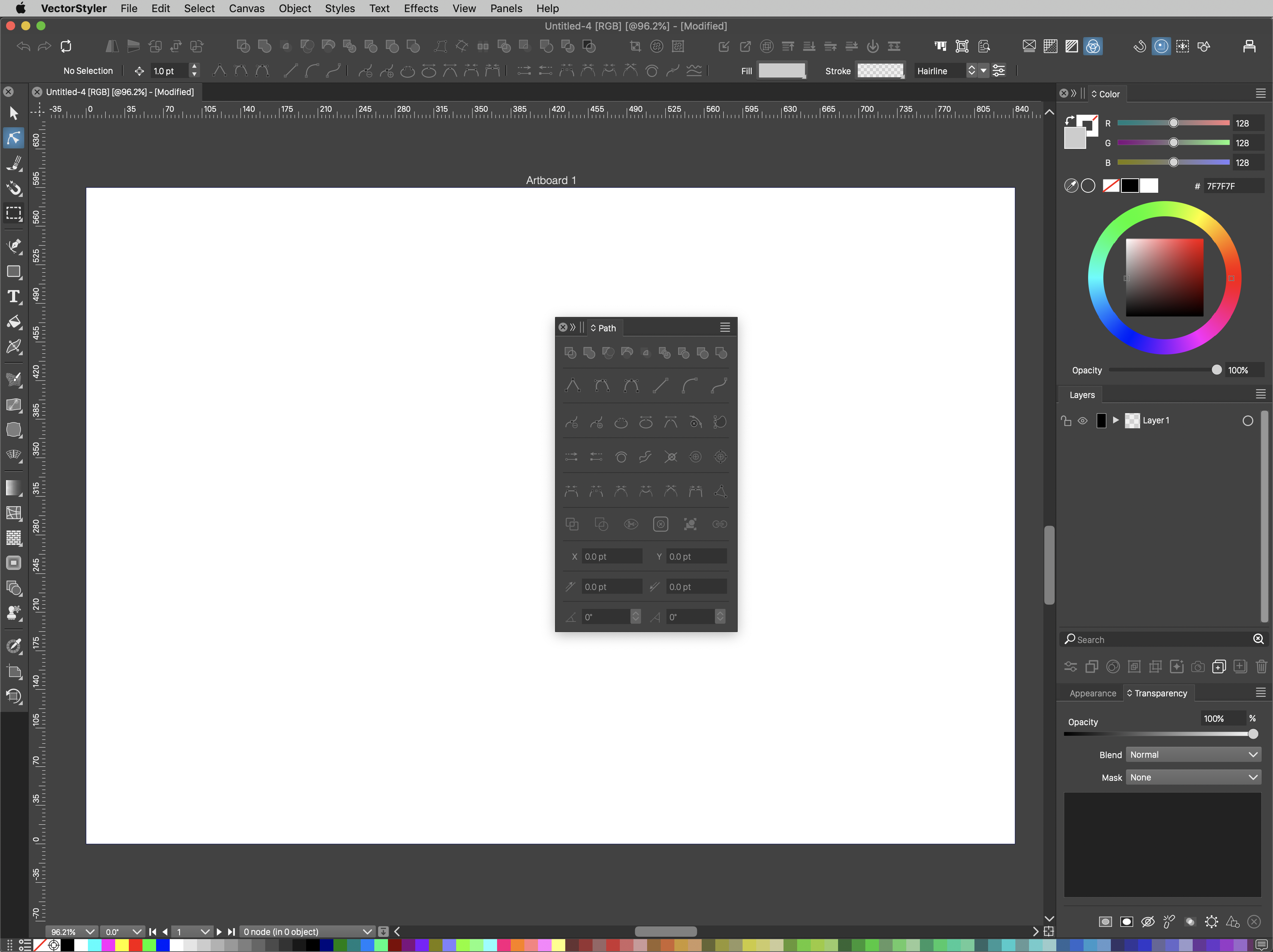 The VectorStyler main view with an empty document.