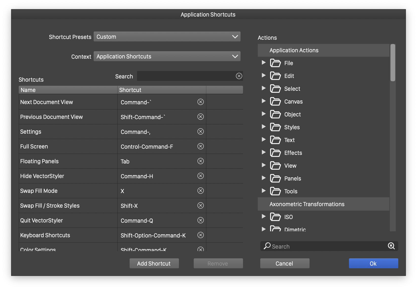 VectorStyler provides various customization options to adapt the application to different workflow and user preference. These customization options can be used to modify both the visual aspect and internal workings of the application. The Settings and Customization chapter provides an in-depth description of the various details of customizing the application. This section highlights some of the possibilities for a quick reference.