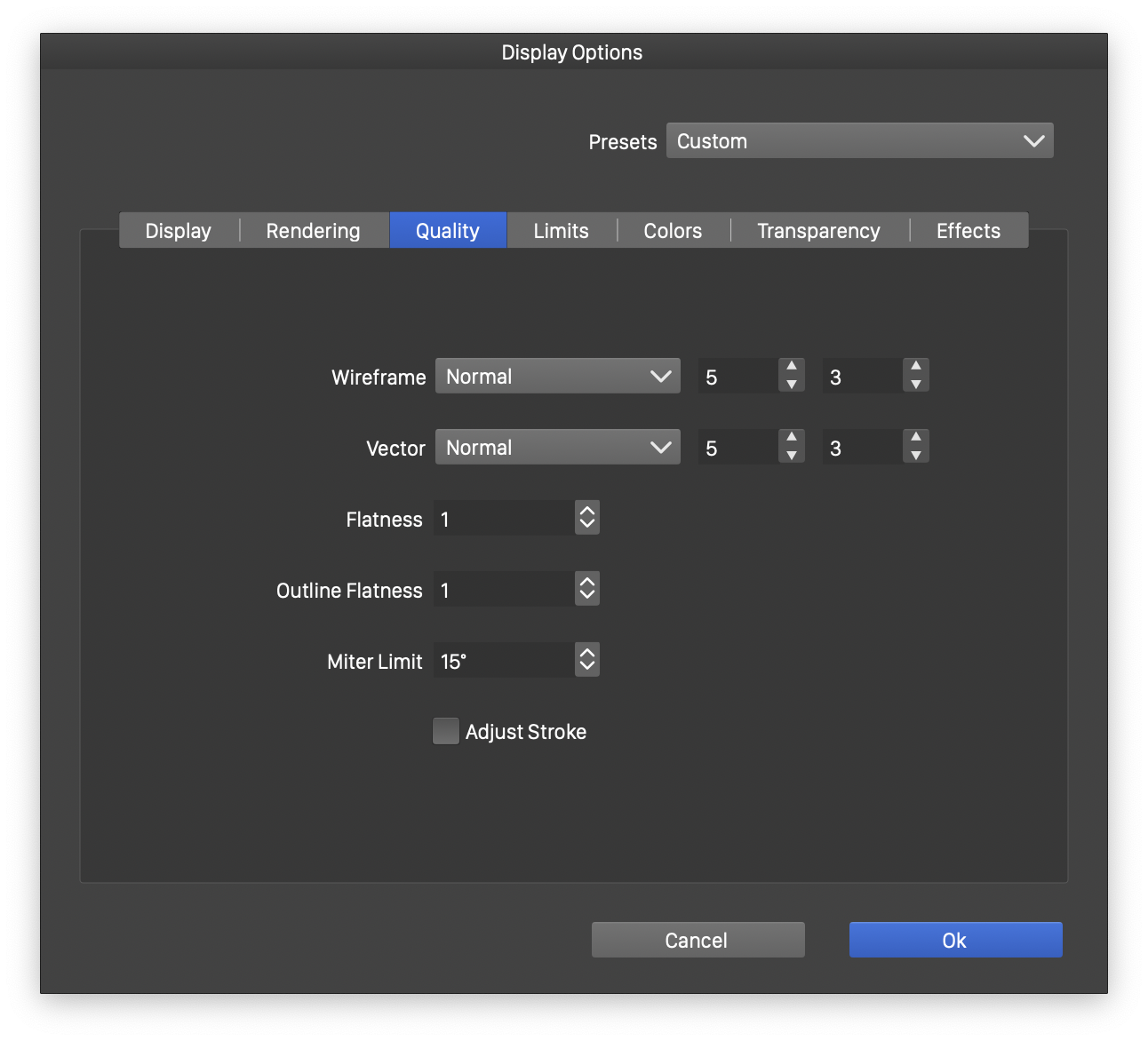 - Adjust Stroke - Enable or disable the stroke adjustment to pixels boundaries while rendering.