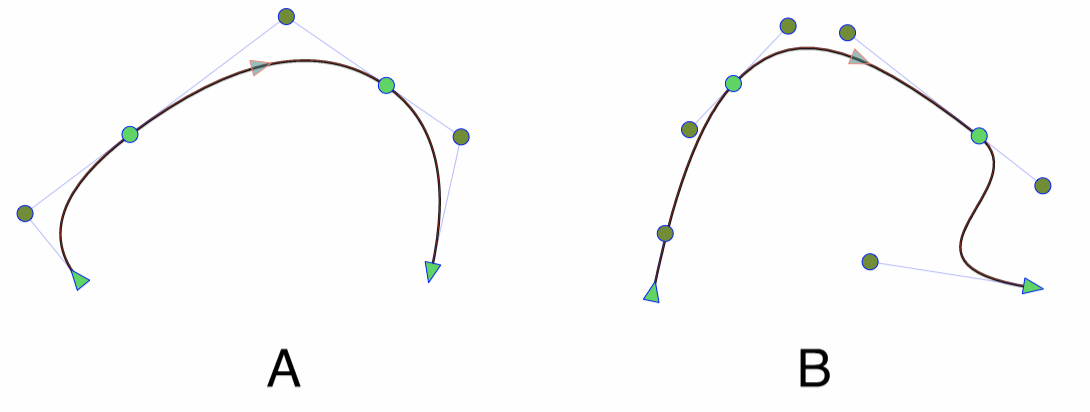 A curve segment type can be (A) quadratic or (B) cubic.