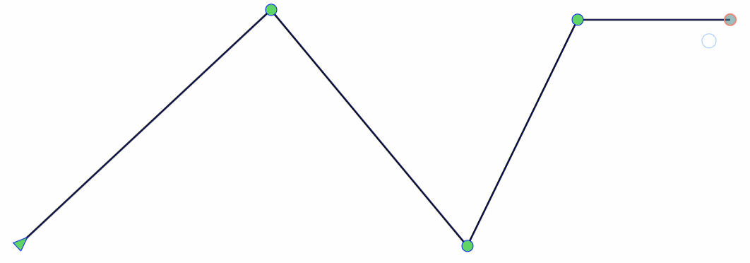 The start of the line is indicated with an arrow node, while the end is a circle. To continue adding lines to the existing shape, press the mouse at the end of the line and drag the mouse to a new line ending location. This will connect a new line to the existing shape, without creating a new object.