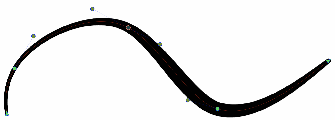 In VectorStyler a path may contain a mix of quadratic and cubic curves (as well as straight lines). The quadratic curves have a single tangent control node, while the cubic curves have two. Quadratic curves are used for example in some (but not all) types of TrueType and OpenType fonts. When converting a text shape using such a font to curves, the resulting paths will contain quadratic curve segments.