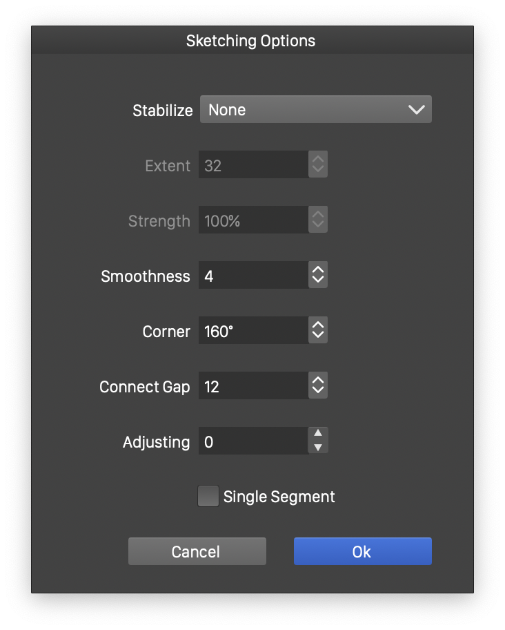 - Stabilize - Select the pen path stabilization scheme used while drawing with the sketch tool.