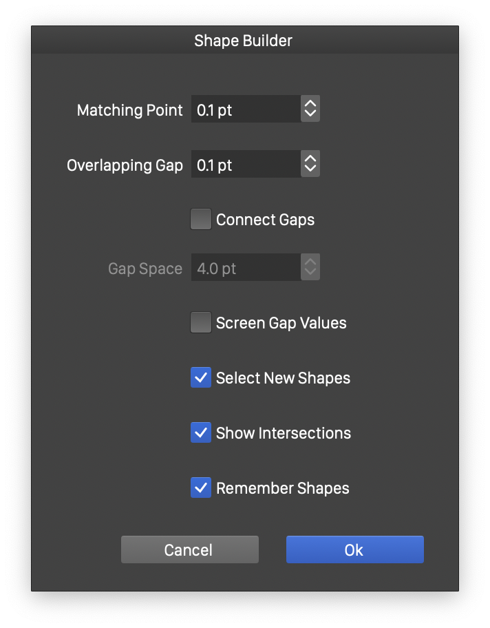 - Remember Shapes - Enables or disables the use shape builder memory. When enabled, the original shapes are kept in the document. If the shapes created using the shape builder tool are not changed further, reactivating the Shape Builder tool will continue the editing as if it was from the original shapes.