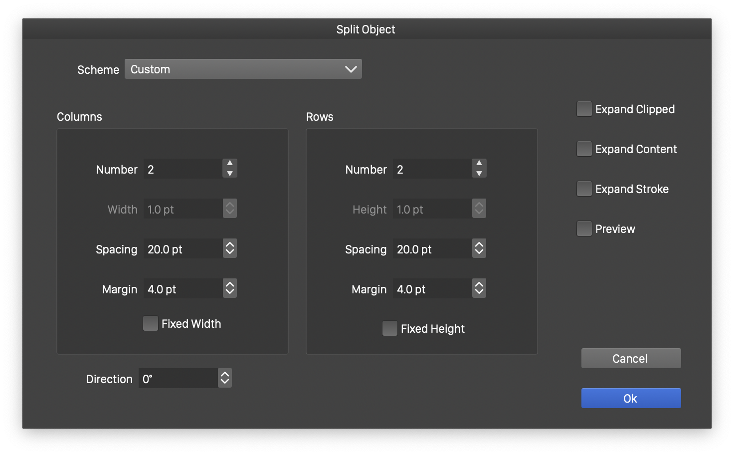 - Direction - Set the direction (angle) of the grid.