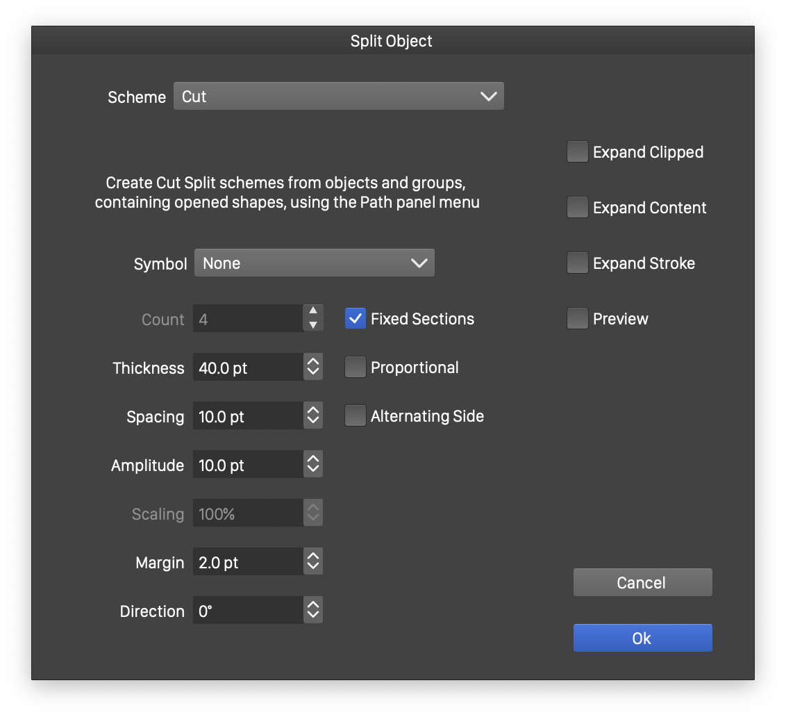 - Count - Set the number of sections to cut the objects into, enabled when the fixed sections check box is off.