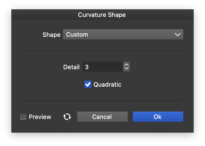 The Curvature shape is a non-destructive shape where the interpolated points and the interpolation detail can be changed by the user at any time.
