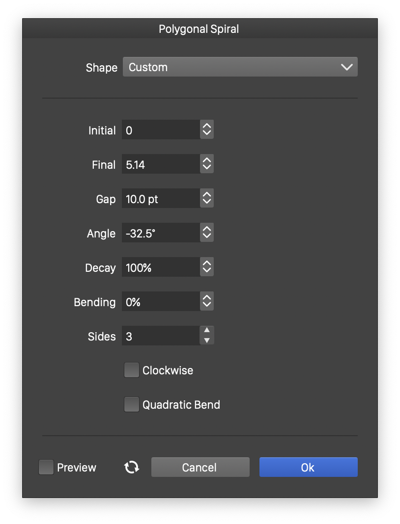 - Angle - Select the rotation of the polygonal spiral.