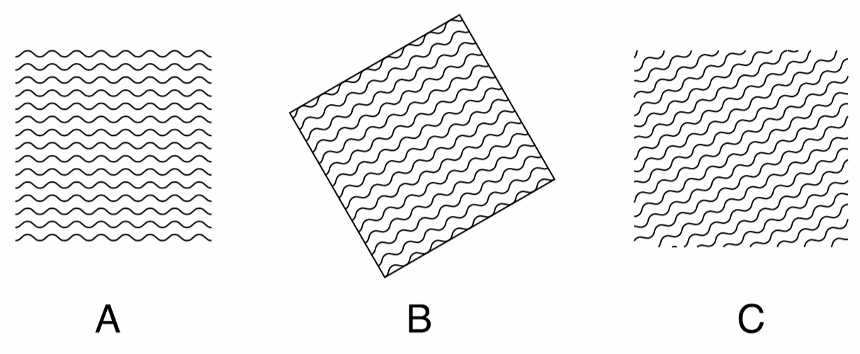 Wave grid shapes with different properties: (A) a normal wave grid, (B) a rotated wave grid with frame, (C) a clipped wave grid with no frame.