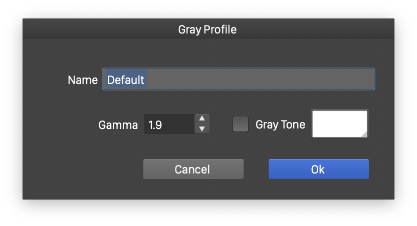 - Name - Edit the name of the gray color profile. Setting a name is required, as the profile is listed using this name.
